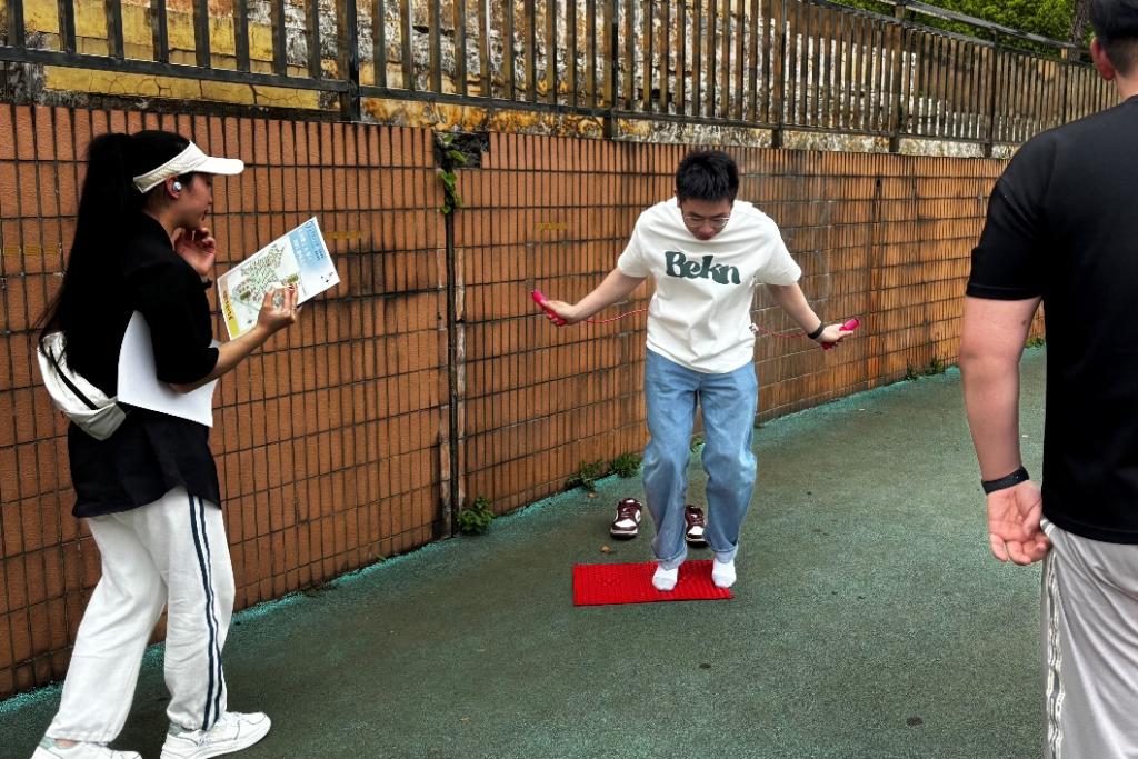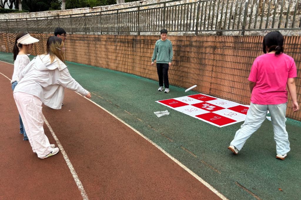 本次定向运动会打破传统体育赛事模式,将运动场等8处地点设为打卡点,精心设计“趣味投壶”“飞盘九宫格”“知识问答”等8个趣味关卡。参赛者以4人为一队,需团队协力完成地图上任务挑战及点位打卡,最后以完成所有项目的时间长度为评价标准,评选出第一、二、三名。