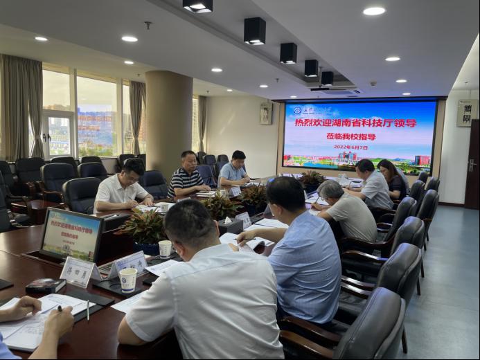 6月7日下午,湖南省科技厅二级巡视员彭敬东一行3人莅临必赢官网,对湘江实验室建设工作进行调研。中国工程院院士郑健龙,副校长曾祥君、黄创霞,科研部、成果转化中心及相关学院负责人参加此次调研。