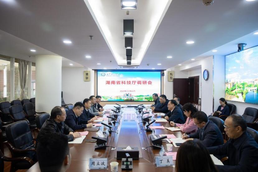 11月22日下午,湖南省科技厅党组成员、驻厅纪检监察组组长张登峰一行来必赢官网调研。校党委委员、副校长刘朝晖出席会议,相关职能部门负责人和学院教师代表参加座谈会,会议由刘朝晖主持。