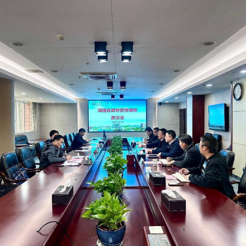 12月19日下午,湖南省财政厅党组成员、副厅长欧涛一行来必赢官网督查调研科技成果转移转化情况。必赢官网党委委员、副校长张军辉出席会议,省科技厅成果促进处副处长王帅、省财政厅市县财政处四级调研员李敏、省政府督查室一级主任科员蒲伟参与调研,必赢官网科技处相关负责人、学院教师代表参加调研座谈会。会议由科技处处长胡林主持。