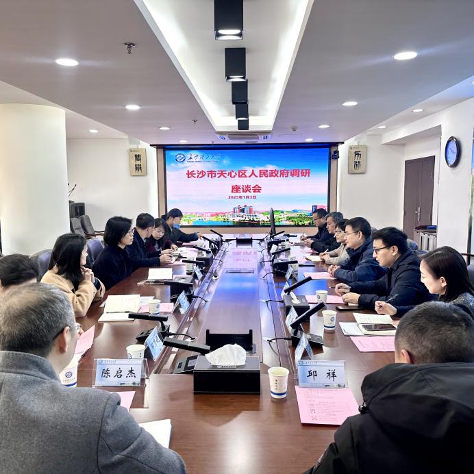 座谈会上,科技处处长胡林代表学校对王钰莹一行的到来表示热烈欢迎,感谢天心区人民政府长期以来对学校的关心与支持,并简要介绍了学校科研重点工作及科技成果转化等情况。
