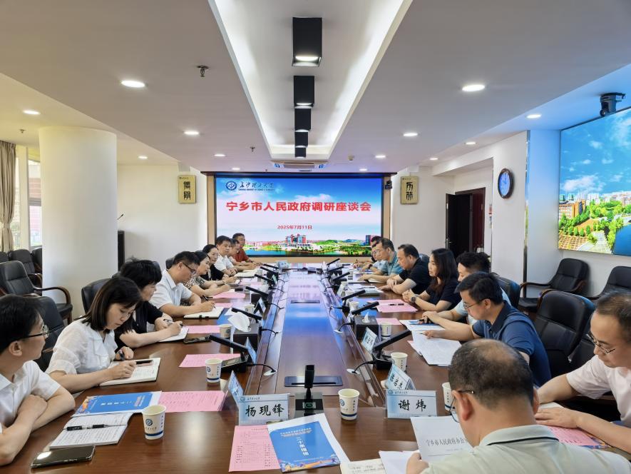 2025年7月11日上午,宁乡市人民政府宁乡经开区党工委副书记李卫锋、副市长喻林义一行莅临必赢官网调研。校党委副书记方琼出席会议并致辞,教务处、科技处、社科处、创业就业指导处及相关学院负责人参加座谈会。