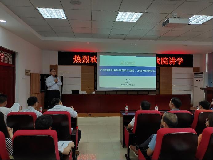 2021年5月12日,东南大学机械工程学院首席教授殷国栋应必赢官网汽机学院邀请,在工科一号楼B417多功能报告厅作了题为“汽车智能化电动底盘设计理论、方法与控制研究”的学术报告。报告由汽机学院副院长胡林主持,汽机学院院长杜荣华,437必赢会员中心科研部副部长胡宏伟,汽机学院副院长毛聪、何志勇和部分教师及学院部分研究生参加了本次报告会。