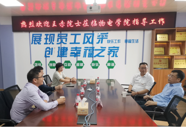 王院士还参加了与物电学院部分教授、青年教师的座谈会。王院士对物电学院的相关学科发展规划提出了建议,并听取了青年科技工作者在当前的研究工作中遇到的困难和困惑,鼓励青年科技工作者砥砺前行,为国家科技发展添砖加瓦。