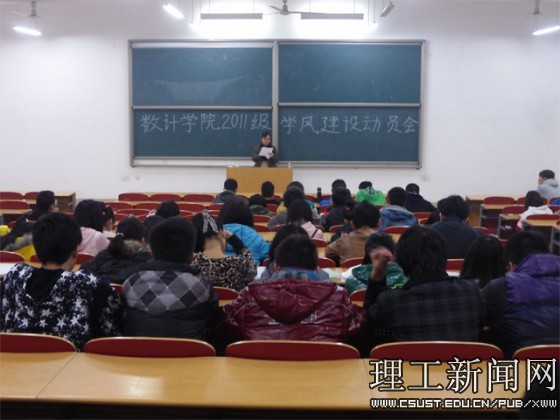 2012年11月20日,数计学院2011级学风建设动员会在理科楼A100拉开了帷幕。与会的有2011级全体学生,会议由2011级辅导员肖凤老师主持。