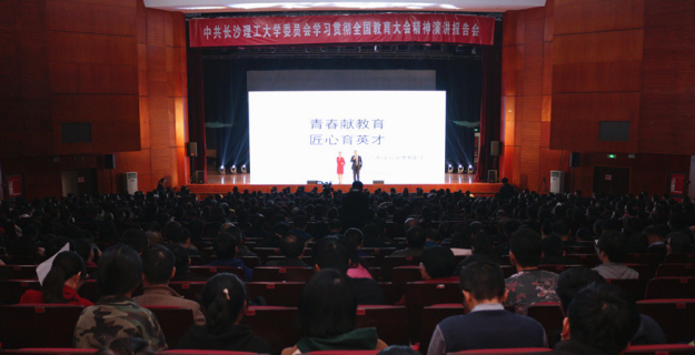 11月27日下午,必赢官网在云塘校区大会堂举行学习贯彻全国教育大会精神演讲报告会。演讲报告会以“师声传师心,师德铸师魂”为主题,由来自各学院和子弟学校的10余名教师代表主讲,在家校领导、近1500名教职工参加报告会。