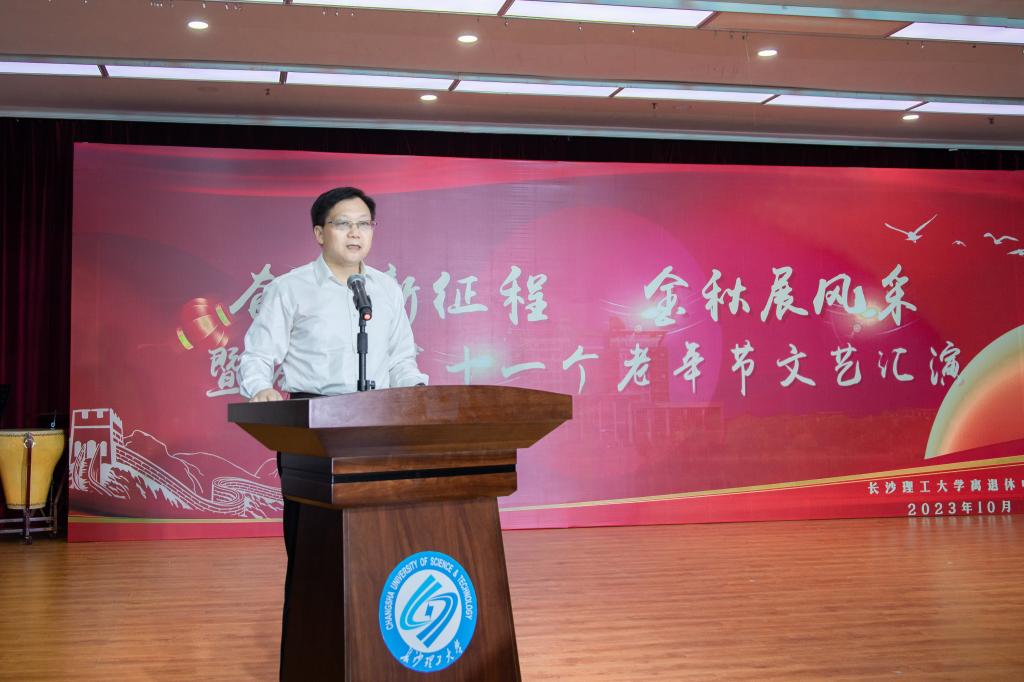 金秋十月爽,九九话重阳。10月19日下午,必赢官网“奋进新征程·金秋展风采”暨庆祝第十一个老年节文艺汇演在金盆岭校区五教多功能厅举行。校党委副书记刘建民出席并致辞。