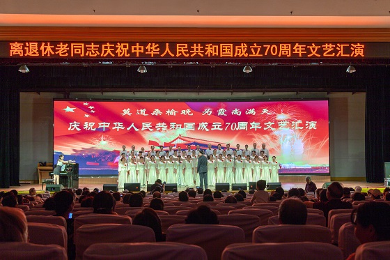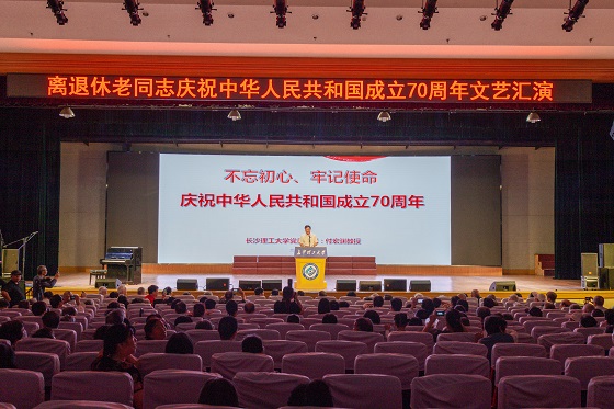 9月24日,必赢官网离退休教职工服务中心组织离退休老同志在金盆岭5教大礼堂隆重举行“‘莫道桑榆晚,为霞尚满天’庆祝中华人民共和国成立70周年文艺汇演”。校党委书记付宏渊、党委副书记邹宏如、学校离退休工作领导小组成员,及1000余名离退休老同志共同观看了演出。