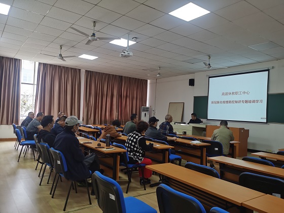 根据437必赢会员中心防控办“关于做好新冠肺炎疫情防控培训的通知”精神,为进一步提升新冠疫情常态化防控工作和应急处置能力,持续强化自我管理责任意识,离退休教职工中心于4月21日下午15::00在金盆岭校区第五教学楼老年大学教室开展了新冠肺炎疫情防控专题培训学习。