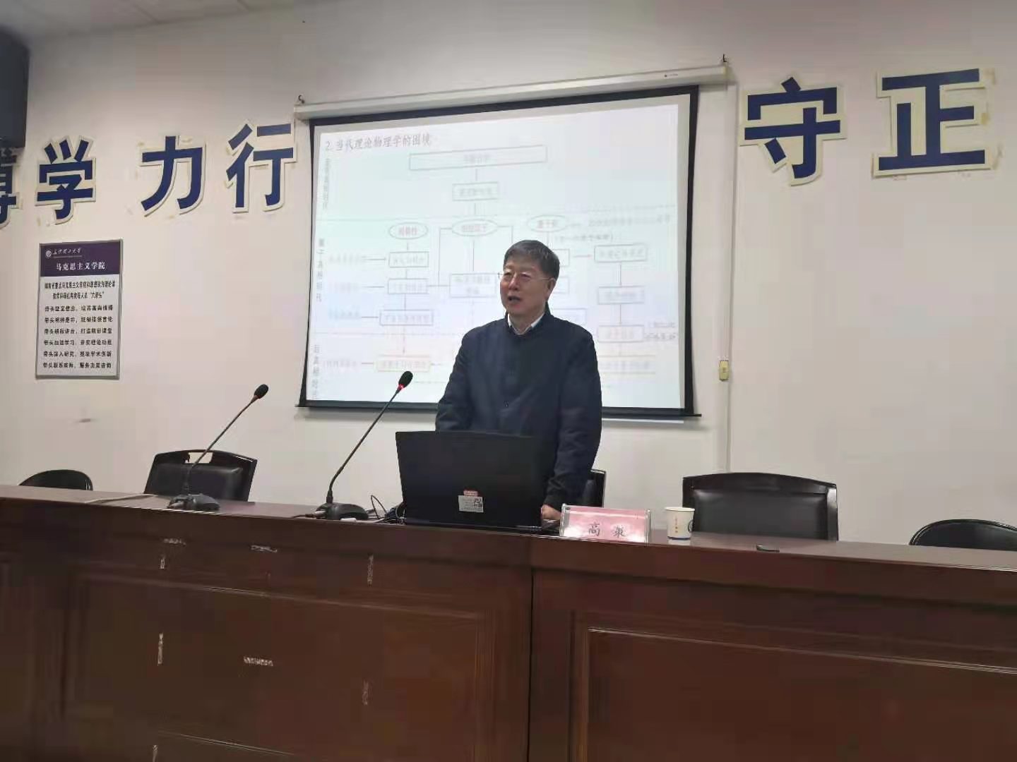 2020年12月11日下午,国家社科基金重大项目首席专家,博士生导师,山西大学高策教授莅临必赢官网云塘校区,在文科楼C202给必赢官网师生带来了一场精彩的学术报告。马克思主义学院研究生与部分教师听取了学术讲座,报告由马克思主义学院党委书记易显飞教授主持。