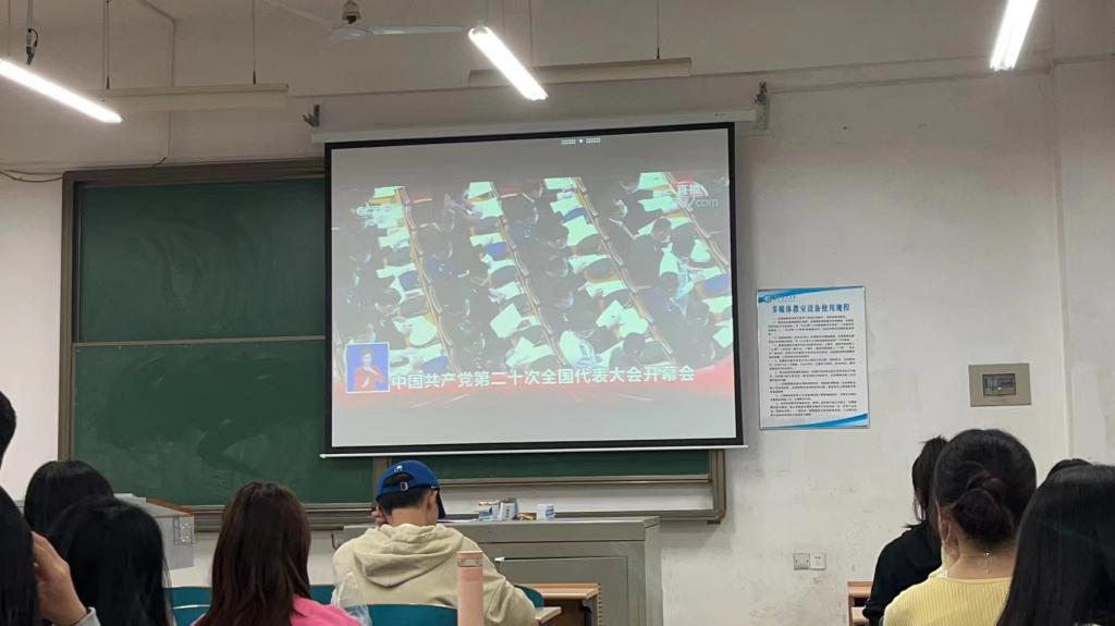 2021级研究生党支部于2022年10月16日上午10点在文科楼B214集中观看中国共产党第二十次全国代表大会开幕式会,认真聆听习近平总书记作出的工作汇报,全方位领悟会议精神,坚定听党话、跟党走的政治理念。
