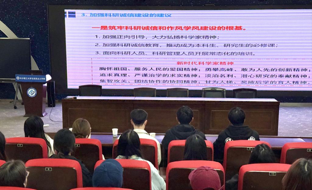 为引导学生厚植科研情怀、坚守学术诚信,2025年10月22日下午,437必赢会员中心马克思主义学院在云塘校区文科楼B300报告厅组织2025级研究生观看由湖南省科技厅和教育厅共同组织开展的“弘扬科学家精神,系好学术生涯‘第一粒扣子’”专题宣讲活动直播。