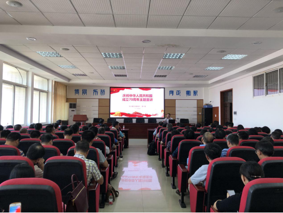 其次,曹校长表示新中国成立是一部感天动地的奋斗史诗,并从中华民族的发展史、世界社会主义运动史和世界文明史三个方面来进行了说明,并以湖南为例。指出了湖南实现了四个跨越:实现了从贫困落后到全面小康的跨越、实现了从百废待兴到百业兴旺的跨越、实现了从内陆封闭到创新开放的跨越、实现了从温饱不足到人民幸福的跨越。新中国湖南70年发展的经验弥足珍贵,表示我们要始终坚持科学理论的行动指南、坚持改革开放、始终把人民群众放在首位、要坚持党的领导不动摇。