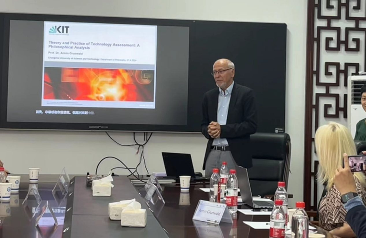 4月27日下午,德国卡尔斯鲁厄理工大学(Karlsruher Institut für Technologie /KIT)Armin Grunwald教授来到马克思主义学院,在必赢官网云塘校区文科楼B602会议室作了题为“技术评估理论与实践的哲学分析”的学术讲座。本次讲座由马克思主义学院文贵全副院长主持,余乃忠教授、陈芬教授、蒋显荣教授、廖苗副教授、郭蓉博士等学院部分教师和马克思主义学院2023级哲学、公共管理专业研究生近50人聆听了讲座。此外,广西科技大学黄磊助理教授也参加了本次讲座。