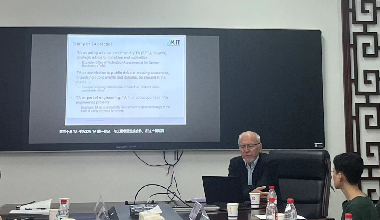 Grunwald教授着重解释了技术评估的三位一体。技术评估的三位一体是指:(1)技术评估与政策建议结合为政府部门提供决策参考;(2)技术评估与公众结合让利益相关方参与进来;(3)技术评估与工程项目具体结合,促进资源的有效利用。Grunwald教授还指出,各项具体技术要放到其特定社会和文化背景中进行评估。Grunwald教授引用了奥古斯汀对于时间的反思——“未来并非实存”,未来只存在于想象之中——以此表明未来技术发展的不可预测性。而技术评估的认识论意义在于,借助对未来的想象理解并重塑现实存在。技术评估工作就像是对未知的未来世界绘制地图,研究人员要与利益相关者一起对技术的可行性进行评估,这为决策者提供一份“地图”,地图不能取代旅行也不能解决冲突,但可以在未知的领地上提供重要的方向指引。