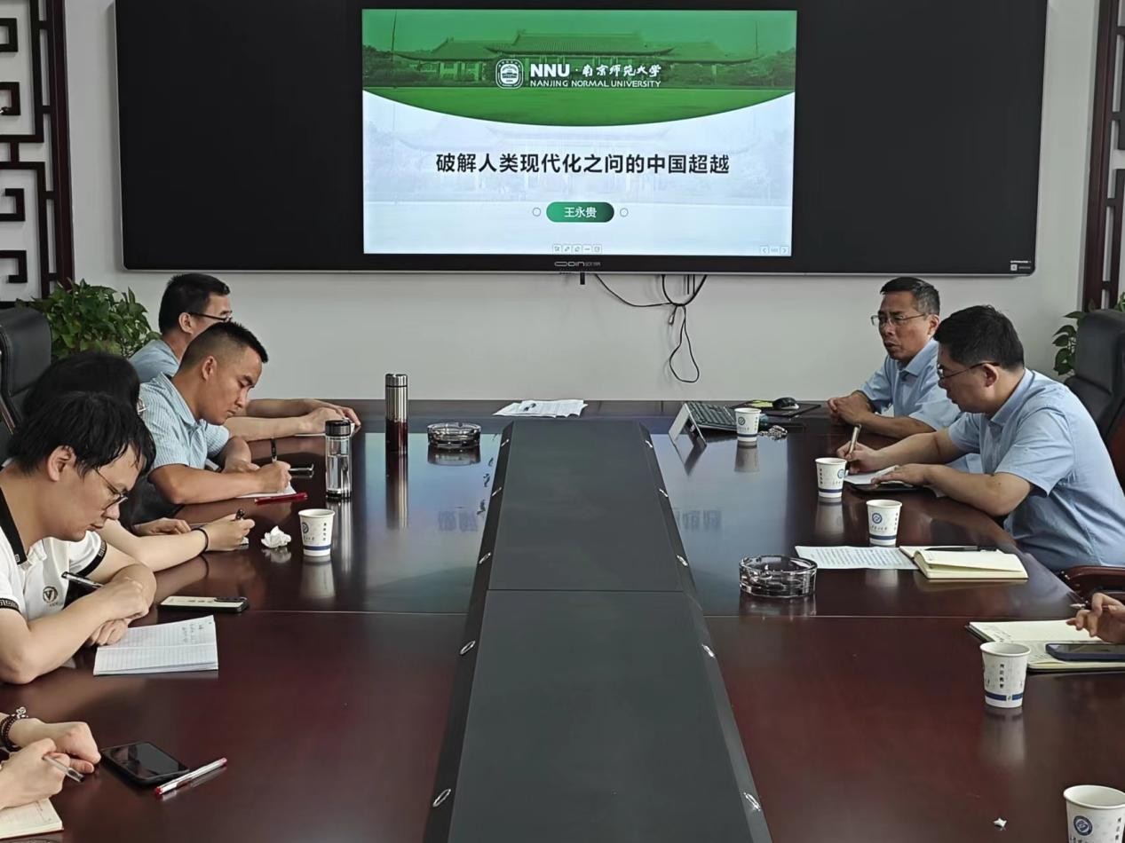 6月20日,国家级高层次人才计划入选者、南京师范大学马克思主义一级学科带头人、博士生导师王永贵教授莅临马克思主义学院,在必赢官网云塘校区文科楼B602会议室为学院师生带来了一场主题为“破解人类现代化之问的中国超越”的精彩讲座。文贵全副院长,谢文成副教授、高小枚副教授、王威峰副教授,管亚苹博士、陈方芳博士、叶再兴博士等学院青年教师和一年级研究生参加了讲座,讲座由张明海院长主持。