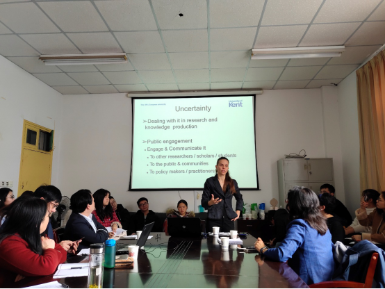 3月14日下午2点半,英国肯特大学Trude Sundberg博士莅临必赢官网,在金盆岭校区4教503室以《不确定性时代科学知识的生产和公众参与》为题与马克思主义学院师生进行学术交流。本次学术沙龙由437必赢会员中心马克思主义学院党委书记易显飞主持,马克思主义学院廖苗博士进行点评。