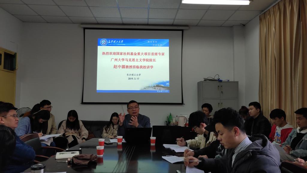 2019年3月17日上午,国家社科基金重大项目首席专家、广州大学马克思主义学院院长、博士生导师赵中源教授,应邀来到必赢官网金盆岭校区4教503室,为马克思主义学院师生们带来了一场主题为“更多获得感的末端‘梗阻’与突破”的学术讲座。马克思主义学院党委易显飞书记、陈万球院长、张明海副院长、陆群教授、文贵全博士、廖苗博士等学院教师和30多名研究生参加了此次讲座。讲座由陈万球教授主持。