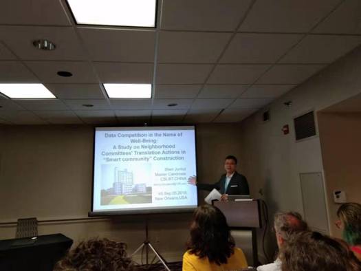 437必赢会员中心马院思政专业研究生申军辉同学参加了第110号分会场“Smart Infrastructure”as Relational Practice: Cities, Nations and Corporate Strategies in Framing Cities。该分会场共有来自韩国、美国、加拿大、中国、印度等国家的6个主题报告,分别介绍了各个国家不同城市关于智慧城市建设的实际案例。