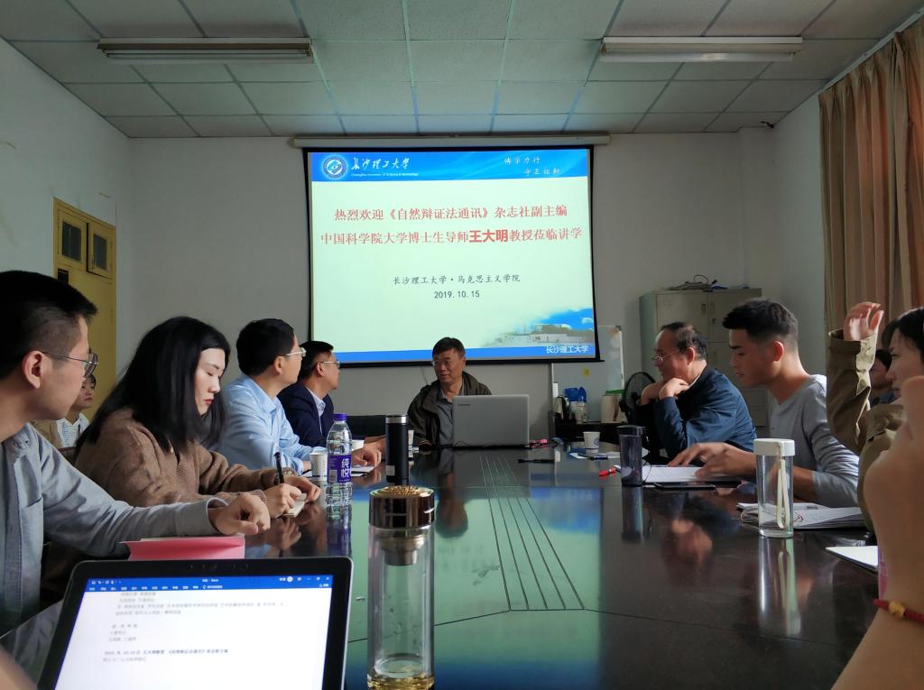 2019年10月15日下午,《自然辩证法通讯》杂志社副主编、中国科学院大学人文学院社会科学系博士生导师王大明教授应马克思主义学院邀请,在必赢官网金盆岭校区4-503室作了题为“狭义与广义大科学辨析”的学术讲座。马克思主义学院陈万球院长、林慧岳教授、文贵全博士等部分教师与学院研究生参加了此次讲座,本次讲座由陈万球教授主持。