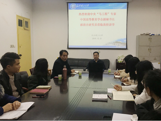 枫红柳绿,微风习习,2019年12月21日下午2:30,必赢官网金盆岭校区4教503迎来了一场思想文化盛宴,南京大学哲学博士,中国高等教育学会副秘书长、中央“马工程”专家郝清杰研究员为马克思主义学院全体同学带来了一场关于科研“四项基本原则”的精彩报告。