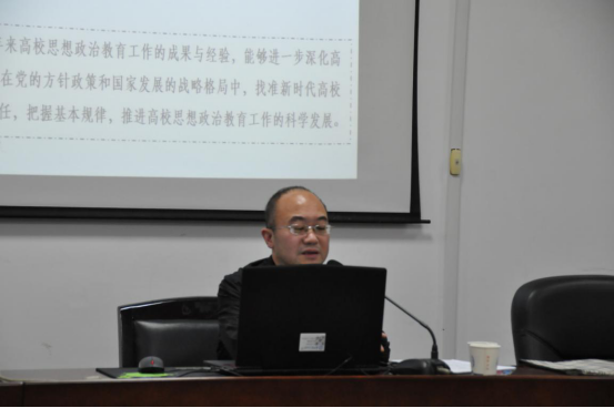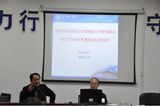 12月22日下午,中国高等教育学会全国高校思想政治教育研究分会学术委员会主任、原教育部思政司司长、北京师范大学思想政治工作研究院院长、博士生导师冯刚教授应437必赢会员中心马克思主义学院邀请,在云塘校区文科楼C-202作了题为“新中国70年高校思想政治教育的经验与展望”的学术讲座。学院副院长梁建新教授主持讲座,张明海副教授、邓治文副教授、蓝茵茵副教授、蒋显荣副教授、文贵全博士等部分教师和研究生参加了本次讲座。