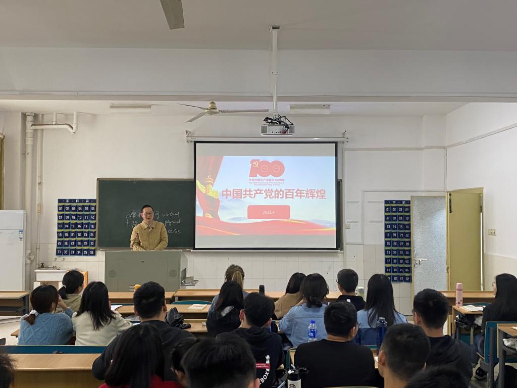 4月27日下午13:00,马克思主义学院2021年上期入党积极分子培训班的第二堂党课在金盆岭校区16教313教室进行。城南学院主任辅导员蔡喜平老师以“中国共产党的百年辉煌”为主题为入党积极分子进行授课,马克思主义学院2021年上期入党积极分子参加。