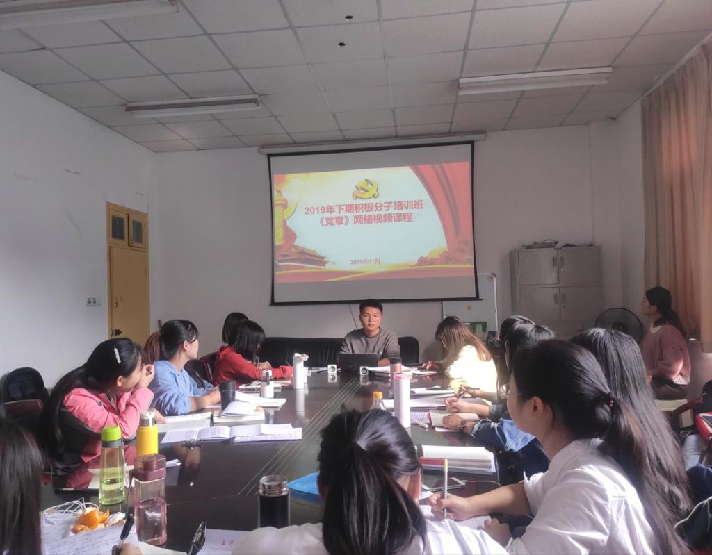 11月12日13:00—14:30,我院2019年下期入党积极分子培训办进行了习近平新时代中国特色社会主义思想网络视频课程学习。本次学习充分发挥互联网时代的优势,充分利用互联网、多媒体等现代工具,用图片、动画等形式,生动形象地向同学们讲述了习近平新时代中国特色社会主义思想的主要内容和意义,增加了趣味性而又不失严谨性,形式新颖,很受大家欢迎,反响良好。