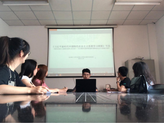 9月28日中午12:00,马克思主义学院2018级研究生党支部在金盆岭4教503开展了“关于新时代坚持和发展中国特色社会主义的能力建设”专题党课。本次党课由组织委员阮英权主持,刘壮同志主讲,2018级研究生党支部全体党员参加了学习。