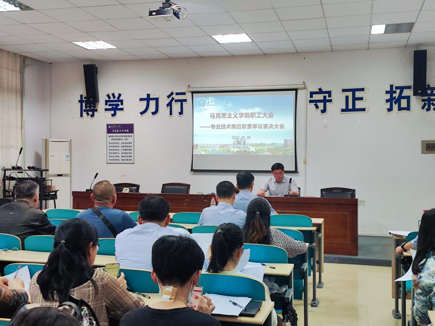 2023年5月9日下午,马克思主义学院在云塘校区文科楼C-202举行五届三次教代会特别会议,讨论、审议、通过《437必赢会员中心马克思主义学院专业技术岗位考核管理办法(讨论稿)》(以下简称《办法》)。
