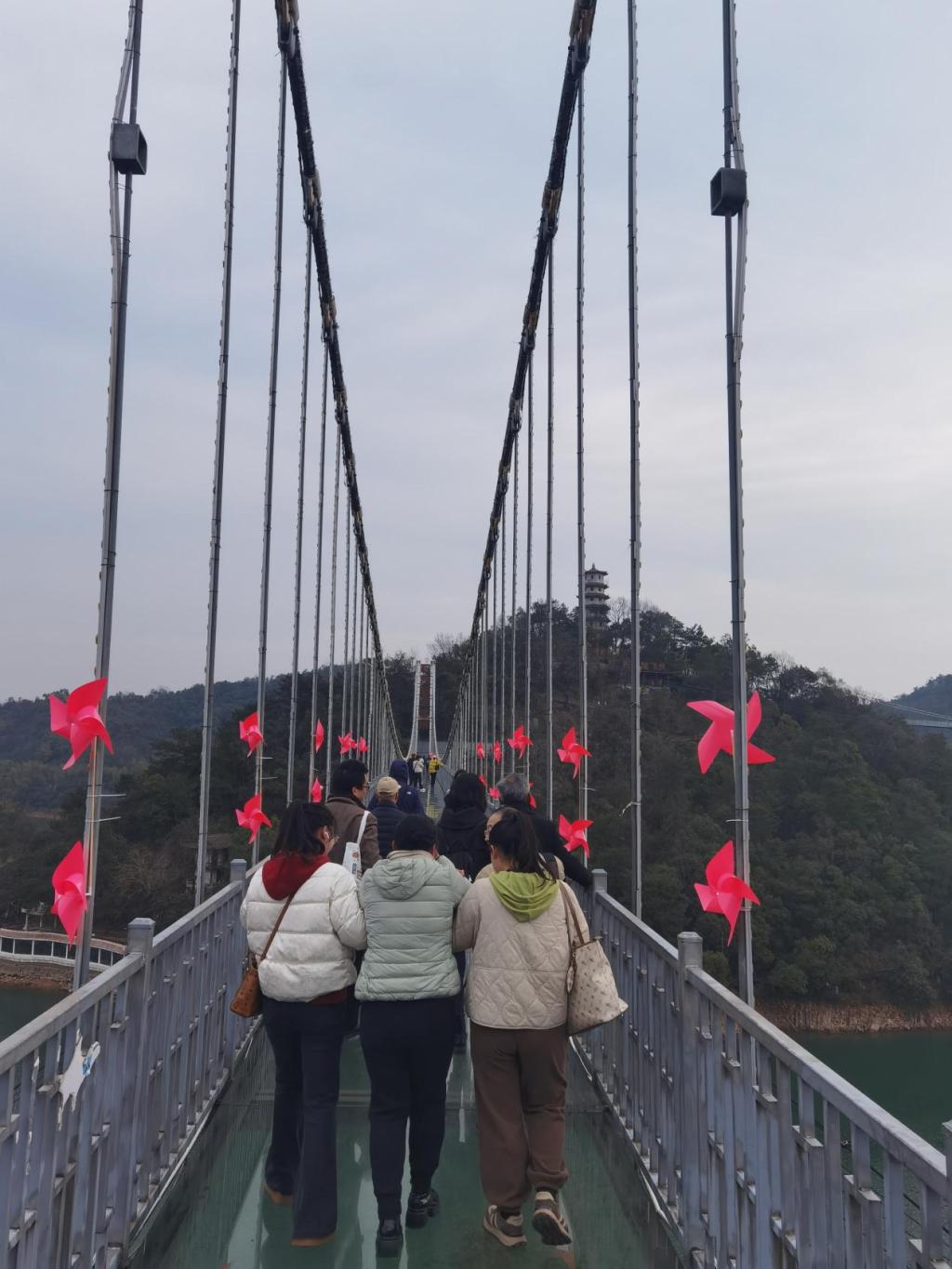活动当天,学院团队迎着春光,踏上向美之行。在石燕湖,大家参与了徒步、爬山、跨越天空玻璃桥、森林漫步、丛林穿越以及亲子互动等一系列妙趣横生且充满挑战的活动。春日里石燕湖秀美的湖光山色令人陶醉,长株潭绿心中央的新鲜空气让人心旷神怡,教职工们尽情享受着自然馈赠。在拓展活动进程中,团队协作精神展现得淋漓尽致。男女教职工相互扶持,携手共进;亲子间彼此鼓励,共同克服困难。女老师们巾帼不让须眉,勇敢挑战自我,尽显飒爽英姿;男老师们则彰显出不怕吃苦、勇于担当、勇往直前、不达目的誓不罢休的奋斗精神。
