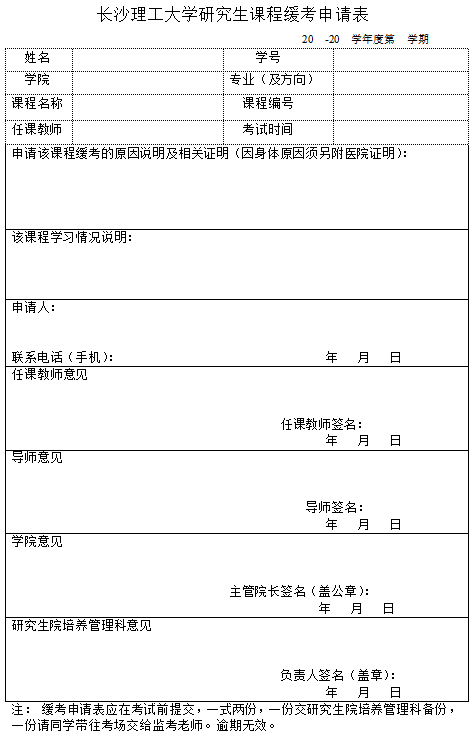 437必赢会员中心研究生课程缓考申请表