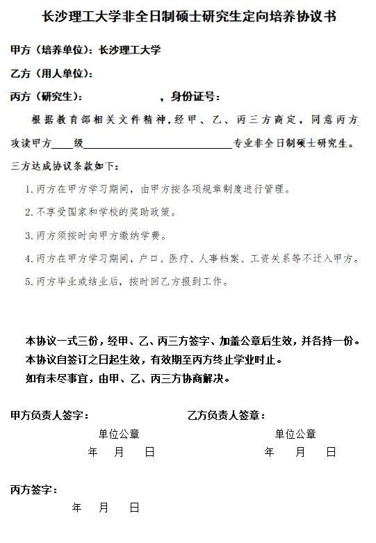 437必赢会员中心非全日制硕士研究生定向培养协议书