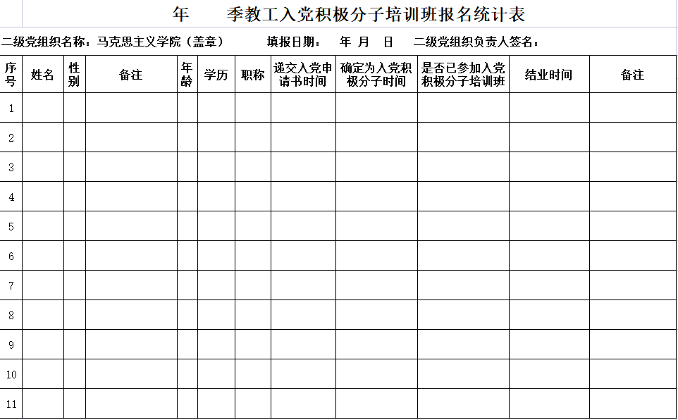 10.教工入党积极分子、发展对象、预备党员培训班报名表.xls