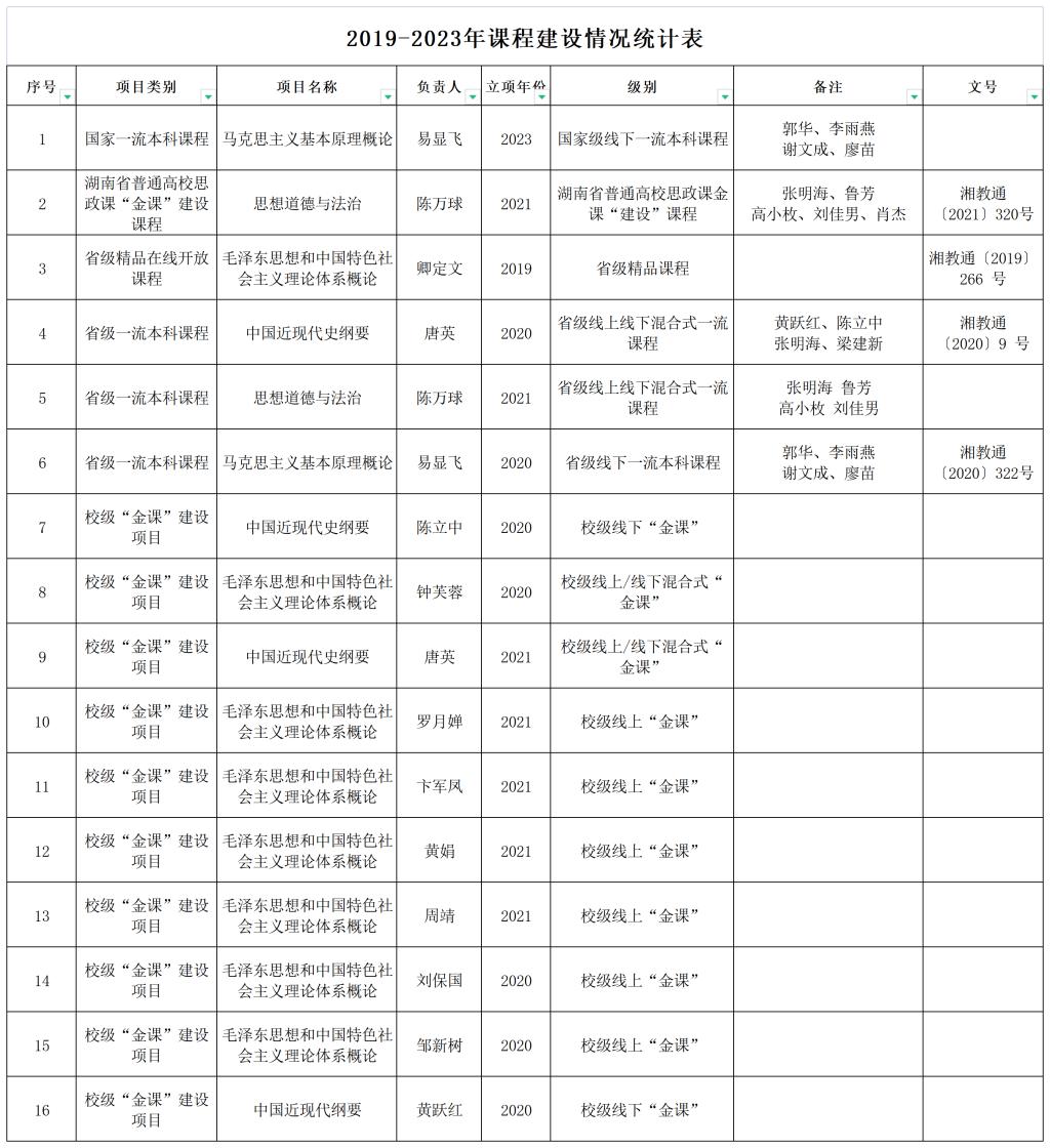 2019-2023年课程建设情况统计表