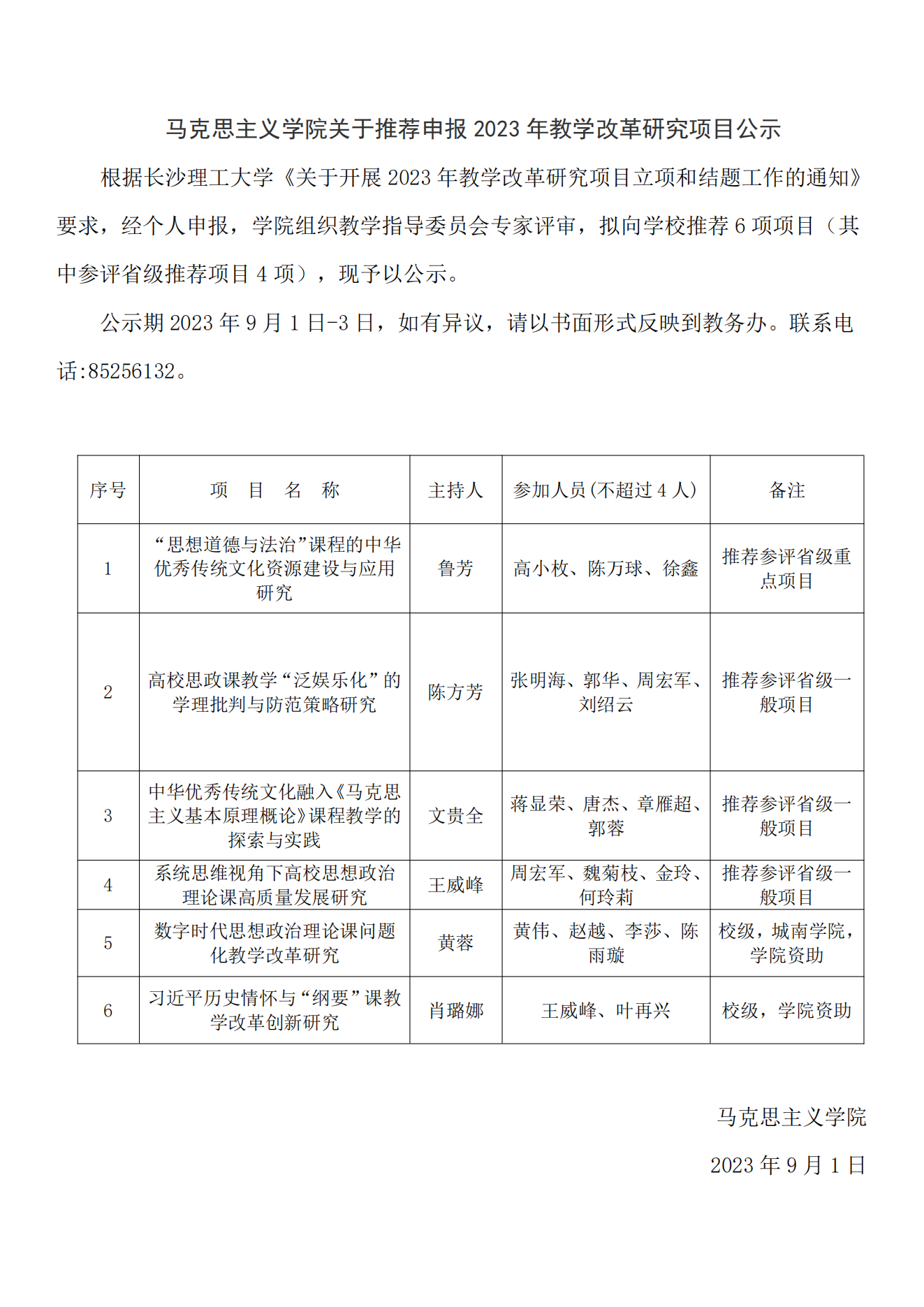 马克思主义学院关于推荐申报2023年教学改革研究项目公示.pdf