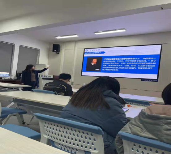 郭华副教授从唯物辩证法的角度对马克思主义物质观、运动观、时空观、意识论等辩证唯物主义相关问题进行生动阐述,对马克思主义原理的基本问题进行系统回答,与同学们进行哲学基本问题的探讨。通过本次讲座,使学生对辩证唯物主义基本问题有较为深入的理解,能够结合专业所学,进一步坚定学生的马克思主义信仰。