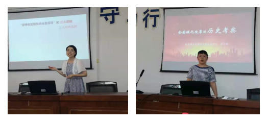 为了提高校级教学竞赛课程质量和教研室的整体教学质量,努力申报校级优秀教学基层组织,我院概论教研室于6月25日下午在云塘校区文科楼C202开展了主题教研活动。活动首先由卞军凤、罗月婵两位老师分别作信息化教学竞赛和课堂教学竞赛的课程展示,接下来由教研室全体教师就展示课程的内容、形式、课件制作、教师教态等方面进行了研讨,现场讨论热烈、交流深入,起到了集思广益、帮助参赛教师打磨课程的效果。同时,通过观摩优秀课程和研讨,激发了老师们对课堂教学和信息化教学的有益思考,增进了集体备课的实效,促进了教研室整体教学水平的提高。