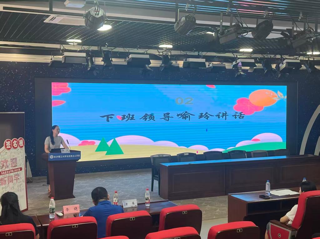 接着,喻玲引用苏格拉底的名言“未经审视的人生不值得过”,启发同学们对专业选择与人生方向进行深入反思。她强调,文科教育不仅拓宽心灵的广度,更在塑造独立、完整的人格方面具有不可替代的价值。此外,她阐述了“守规则而不失自由”以及“包容理解、和而不同”的成长理念,鼓励大家保持辩证思维、积极沟通、不断锤炼表达能力,以自信从容的精神面貌迎接未来的学习与职业挑战。李晓在总结中高度评价讲话内容,他指出其内容高度契合马克思主义学院的育人理念,引导同学们认真思考“何以为人、何以为学、何以为道”。