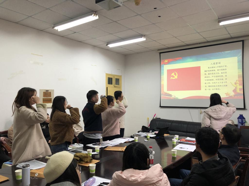 会议严格按照党组织规定的预备党员转正程序进行。大会伊始,全体起立,奏唱国歌,满怀深情的《义勇军进行曲》震撼心灵。之后,待转正的预备党员逐一宣读《转正志愿书》,并向党组织汇报自身在预备期内的政治思想、理论学习和社会实践等各个方面表现的收获及不足,随即入党介绍人邓深林同志、刘佳同志等根据对各位同志的日常表现进行发言,说明对其考察情况和转正意见。随后,刘佳同志代表支委向大会报告了6名同志的日常表现及政治审查情况,与会党员对转正对象是否符合党员条件发表了意见。最后经支部党员充分讨论,正式党员对6名同志进行无记名投票,并现场公布投票结果。大会认为,王弈畈等6名同志基本符合党员条件,一致同意接收王弈畈等6名同志成为中共正式党员。