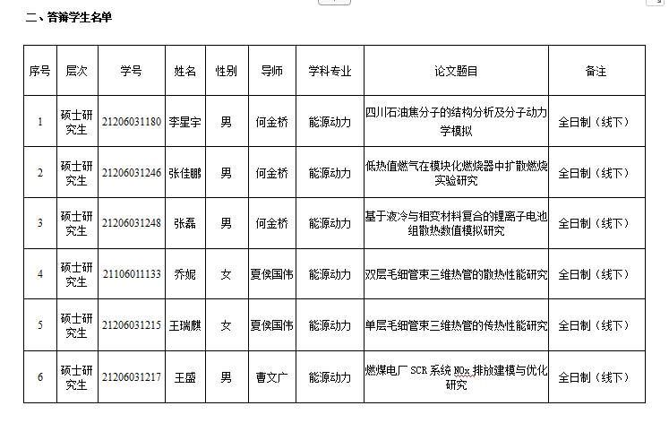 2024年能源与动力工程学院研究生学位论文答辩安排(六)