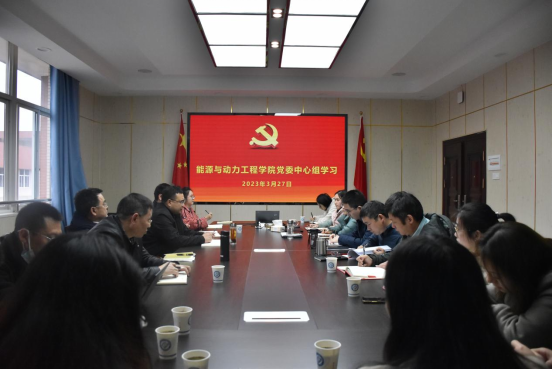 3月27日下午,能动学院党委中心组在新能源大楼2号楼511会议室开展理论学习研讨,院党委书记成华主持,院党委班子成员、教工支部书记、全体辅导员参加学习。