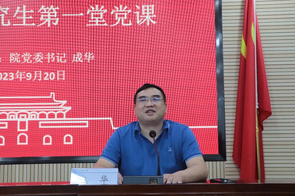 9月20日,能动学院2023级研究生第一堂党课于新能源大楼2栋502举行。本次党课由能动学院党委书记成华主讲,院党委副书记兼副院长张晓烽主持,研究生辅导员李觅及2023级全体研究生参加。
