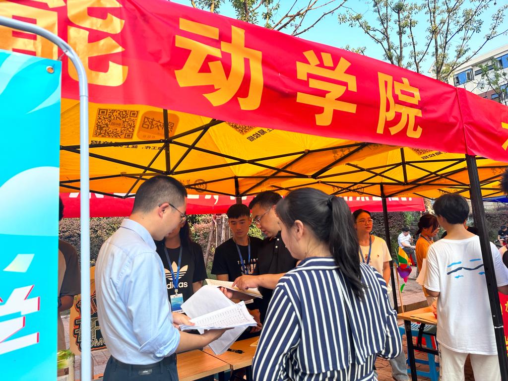 学院23级本科生报到点设于新能源大楼2栋503室,分为资格审核区、物资领取区、绿色通道咨询办理区三个区域。其中,物资领取区除必备的学生手册、实验安全手册等资料以外,学院还精心准备了富有学院特点的专属卡套和钥匙扣。同时,新能源大楼2栋1楼专门设置了拍照区,敏行轩3栋和弘毅轩2栋均设有值班点,以了解学生及家长关切,做好沟通引导工作。