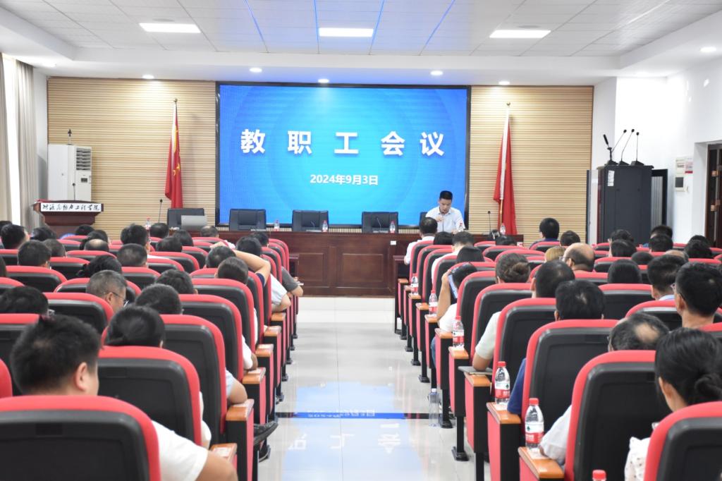 9月3日下午,学院在能源2栋504会议室召开全体教职工会议,布置新学期重点工作。王明彦传达学习了学校2024年第二次党政工作例会(扩大)精神。他指出,在学校党政工作例会上,校党委书记付宏渊系统阐述了如何认识和把握党的二十届三中全会精神,深入解读了全会对教育提出的新要求、新任务,深刻剖析了学校目前发展面临的形势与挑战,明确提出了以全面深化改革推进学校高质量发展的具体路径。他强调,全体教职工要深入学习贯彻党的二十届三中全会精神,夯实进一步全面深化改革的思想基础,以良好的精神面貌不折不扣落实学校进一步全面深化改革决策部署。各分管院领导围绕教育教学、学科专业建设、项目申报、师德师风和人才队伍建设等方面对本学期的重点工作进行安排布置。李传常总结讲话指出,党的二十届三中全会吹响了紧紧围绕推进中国式现代化进一步全面深化改革的号角。进一步全面深化改革是推进学院高质量发展的根本之策,学院领导班子将以党的二十届三中全会精神为指引,坚决贯彻学校指示精神,团结带领全院师生精心谋划学院改革发展。希望全院教职工进一步强化立德树人使命责任,扎实做好本次会议部署的各项重要工作,切实增强改革意识,团结一心促进学院高质量发展。