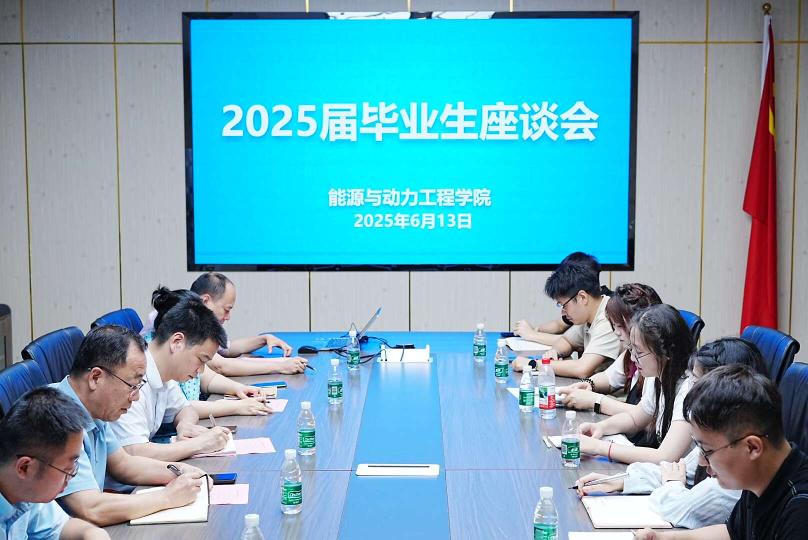 为搭建师生深入交流的平台,倾听毕业生心声与建议,传递学院的殷切期望与祝福,6月13日上午,能源与动力工程学院2025届毕业生座谈会在新能源2号大楼511会议室举行。学院党委书记王明彦,院长李传常,党委副书记、副院长张晓烽,副院长田红、彭卓寅,学院关工委常务副主任顾社民,四位系主任王唯、陈建林、王蒙、刘代飞,学工辅导员罗亦欧、李觅、李逸奇,15位毕业生代表参加会议,活动由田红主持。