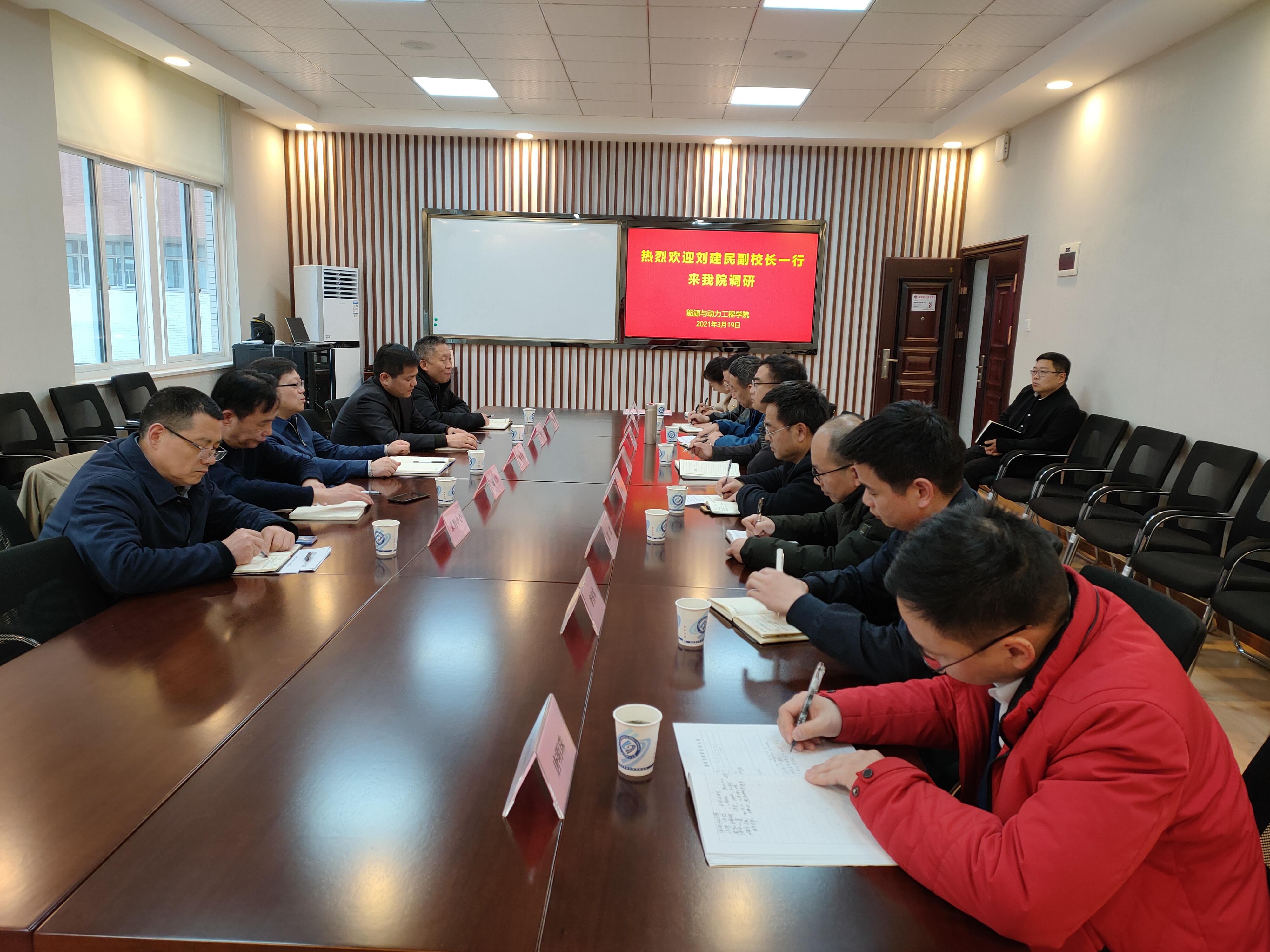 3月19日下午,副校长刘建民在资产处、图书馆、信息化中心、采购中心等负责人陪同下,莅临学院调研指导工作。学院领导班子成员和部分系主任参加座谈会。