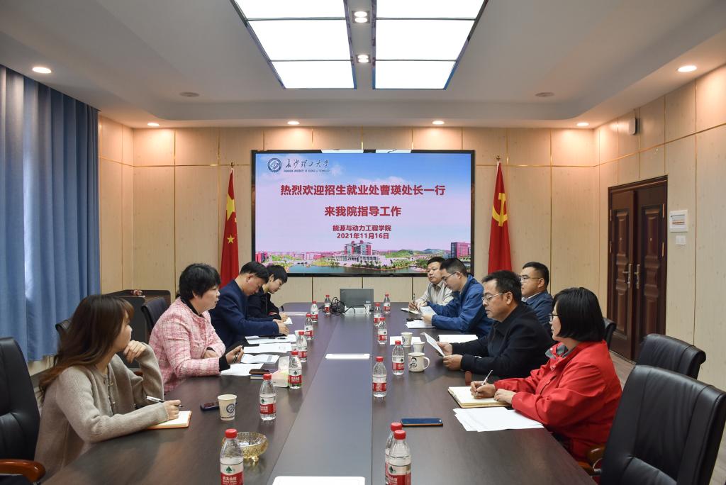 11月16日上午,学校招生就业处到能动学院调研指导招生就业工作,座谈会在新能源大楼511举行,招就处处长曹瑛、副处长田向阳、李娜、招生科科长贺佐杰,院党委书记成华、院长陈荐、党委副书记张晓烽、副院长田红、辅导员彭博参加座谈。
