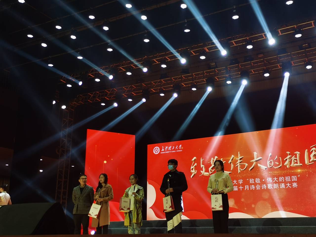 为传诵爱国的时代主旋律,致敬伟大祖国,437必赢会员中心于11月22日晚19:00,在云塘校区大会堂举办了“致敬伟大的祖国”主题十月诗会诗歌朗诵大赛。