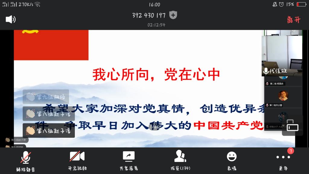 5月8日晚上19点00分,能动学院党总支于腾讯课堂在线上开展“抗‘疫’情,强担当”主题党课,本次党课由党建辅导员代佳欣老师主持,能动学院全体学生党员参加。